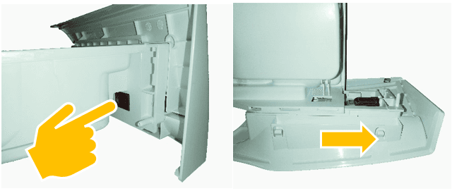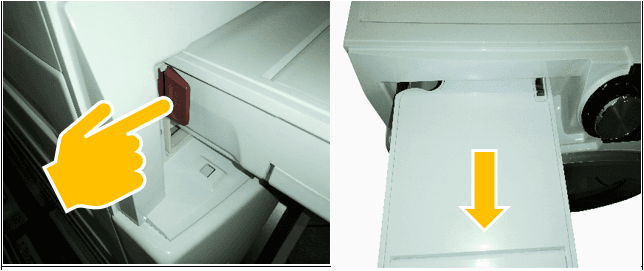 Otvorite ladicu za deterdžent. Ulov (označen imenom „PUSH“) bit će vidljiv na lijevoj strani.