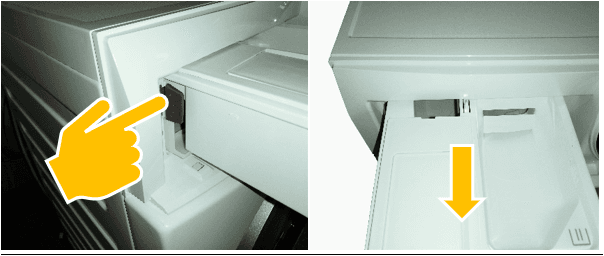 Pritisnite kvaku („PUSH“) kako je prikazano na slici i izvucite ladicu za deterdžent.