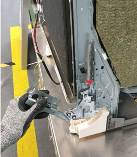 5. otvorite vrata i blokirajte kretanje šarke postavljanjem zatik u istaknutu rupu
