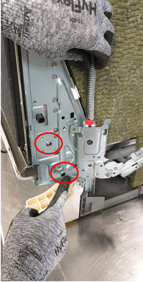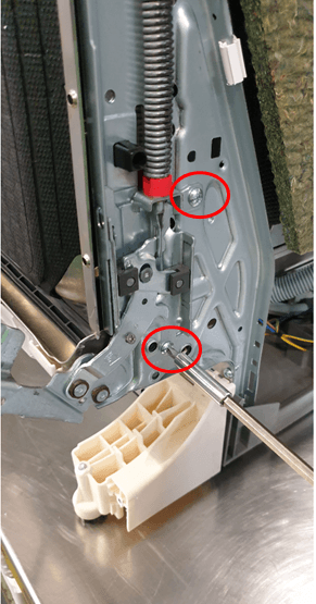 6. Uklonite 2 vijka za pričvršćivanje na unutarnjim vratima (desno i lijevo) i uklonite vanjska vrata