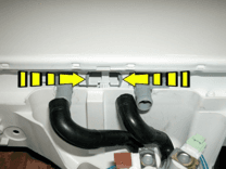 Proširiti / slomiti stezaljke koje blokiraju cijevi koje vode do uređaja za doziranje vode.