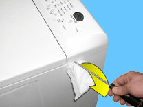 Prije intervencije na opremi postavite zaštitu iznad bubnja kako biste spriječili da mali dijelovi padnu u kadu.