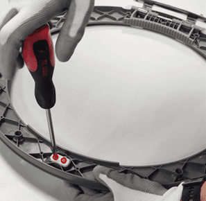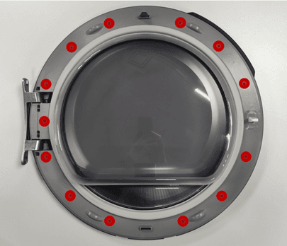 2. Отпустите 13 шрафова који причвршћују унутрашњи оквир врата. Пажљиво отворите врата притиском на стаклени елемент.