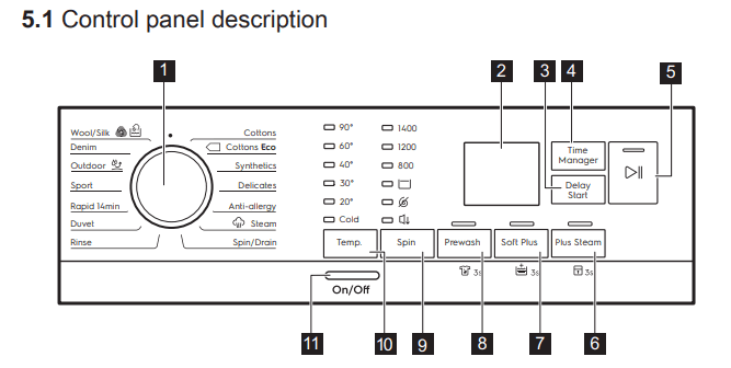 Да бисте деактивирали ову опцију, притисните и држите дугмад Мрље/Претпрање (10) и Додатно испирање (7) 5 секунди док се катанац више не приказује на ЛЕД дисплеју.