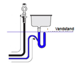 Ево примера одводне инсталације где постоји ризик да прљава канализација може поново да уђе у машину за прање судова: