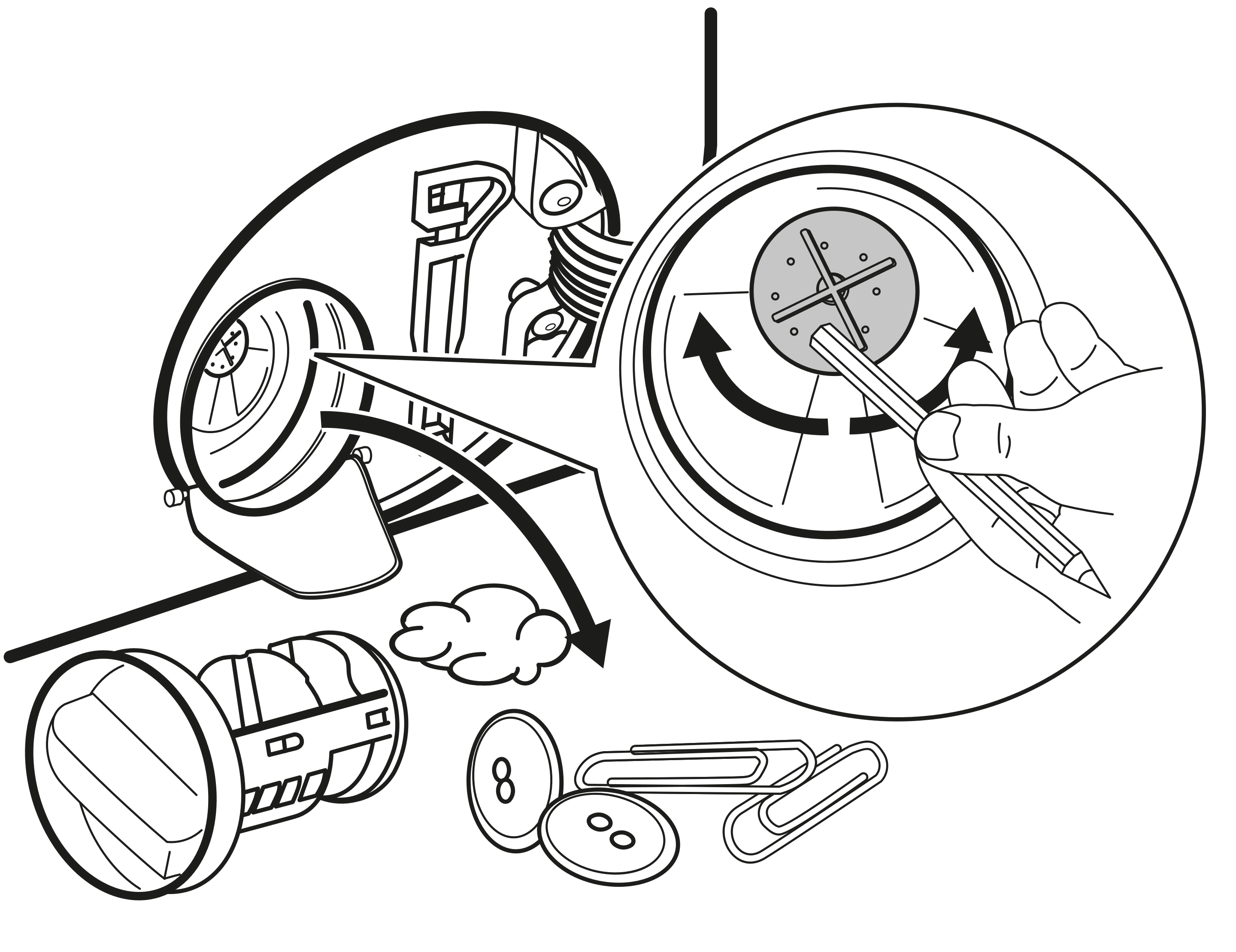 - Očistite pumpu i filter za sakupljanje vlakana, uključujući lopaticu pumpe (ako je lopatica pumpe vidljiva, zakrenite je olovkom i ponovo postavite filter).