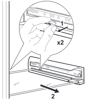 2. Izvucite klinove za zaključavanje s obje strane police (1).